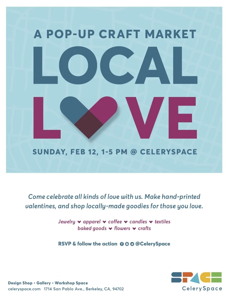 Local Love at Celery Space Sunday, February 12, 2017 10:00 AM 2:00 PM 10:00 14:00 Google Calendar ICS